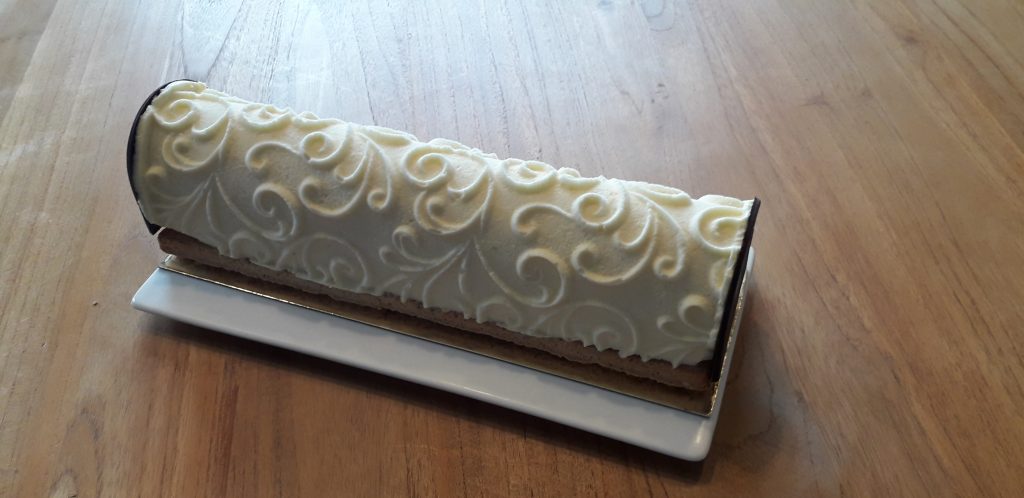 Minimum 8 à 10 heures avant de la servir, démouler délicatement la bûche et la réserver au réfrigérateur.