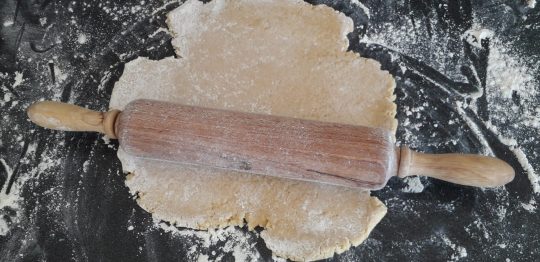 Former une boule et l’envelopper dans un film plastique. Laisser reposer la pâte 1 heure au réfrigérateur.