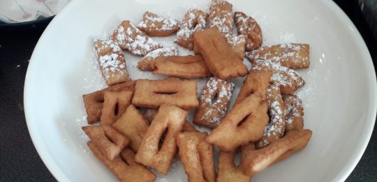 Crostoli est le nom frioulan des bugnes lyonnaises. Que ce soit à Lyon ou à Castions, on le prépare traditionnellement pour Mardi Gras.